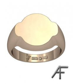 Massiv klackring med mjuka former. Plattan mäter ca 13,7 x 15,2 mm, men modellen kan vi även tillverka i andra storlekar. Vi tillverkar denna klackring i 18 k rött eller vitt guld. Då ringen är helt massiv lämpar den sig mycket bra för handgravyr, om ni önskar monogram eller en vapengravyr.